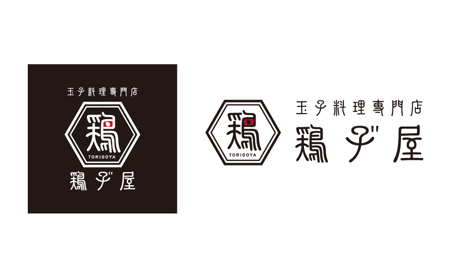 六角形は鶏小屋を表し、「鶏」の文字の中にアクセントとして玉子をイメージしたモチーフを配置しています。
