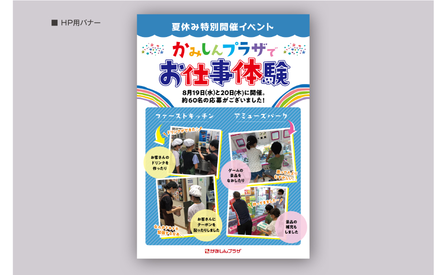 館のファンの獲得・館内盛り上げを目的に、かみしんプラザ内にあるテナントに協力の元、お仕事体験イベントを開催。